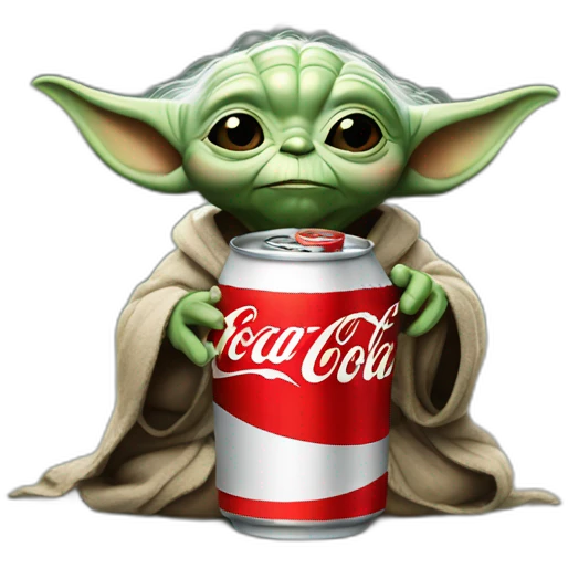 Bebe yoda drinking coca cola emoji | AI Emoji Generator