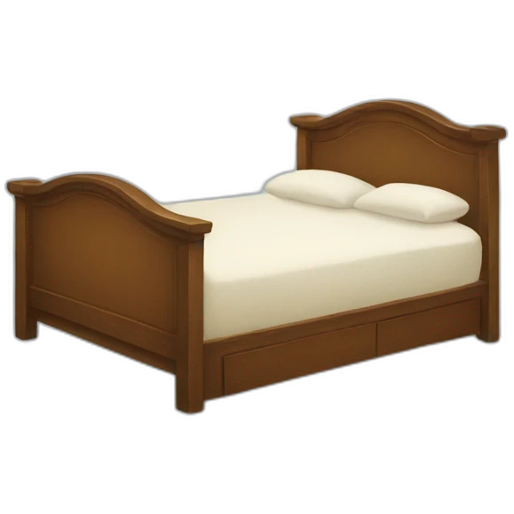 bed with a wrinkled light blue blanket, cream mattress, and one pillow out of place on the floor. Around the bed, scattered items include an orange t-shirt, greenish-blue pants, and an open book on the floor. The background is transparent emoji