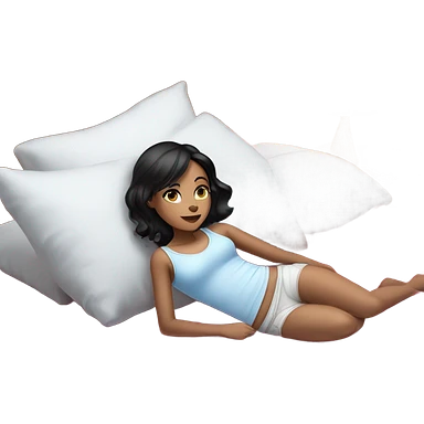 curly haired girl with tan skin sleeping in bed under light pink covers emoji