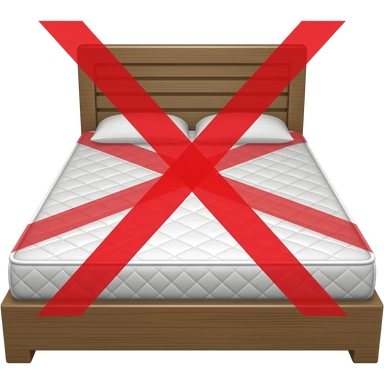 bed with headboard, basic, and on top of it is a red X, X overlays the bed, remove the x on the mattress, X is thinner emoji