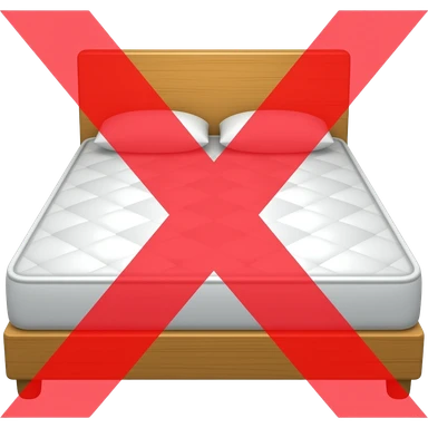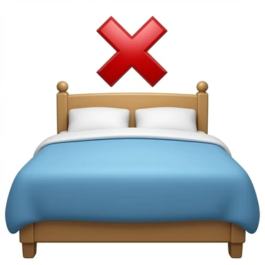 bed with headboard, basic, and on top of it is a red X, X overlays the bed, remove the x on the mattress, bed is side view emoji | AI Emoji Generator