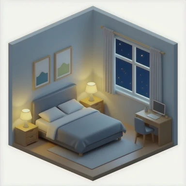 isometric-3d-cute-small-bedroom--mid-century modern-interior emoji