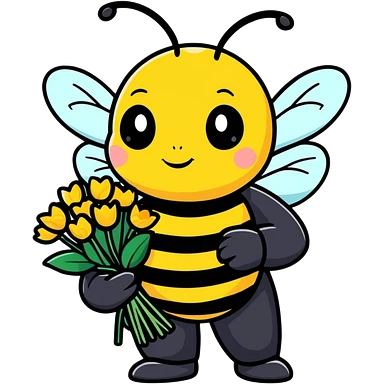 Isolated cute buzzing bumble bee , detailed pale blue, to pale yellow colorshifting wings emoji