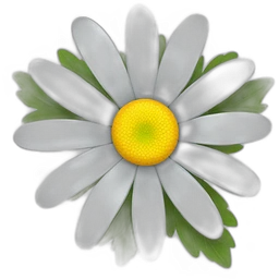 A fifteen-petalled daisy with green, red and white petals and a yellow centre. Only the face of the daisy should be visible. emoji