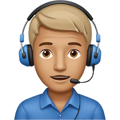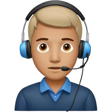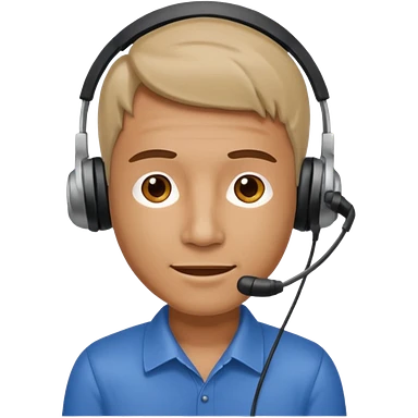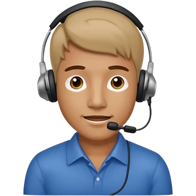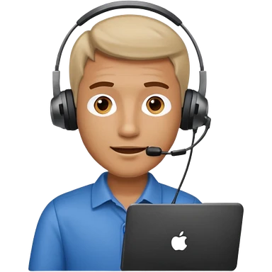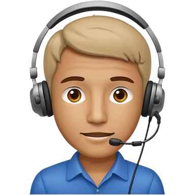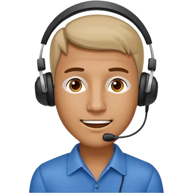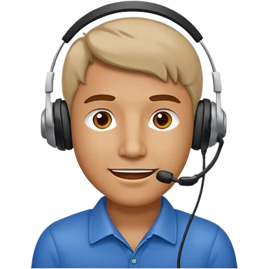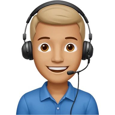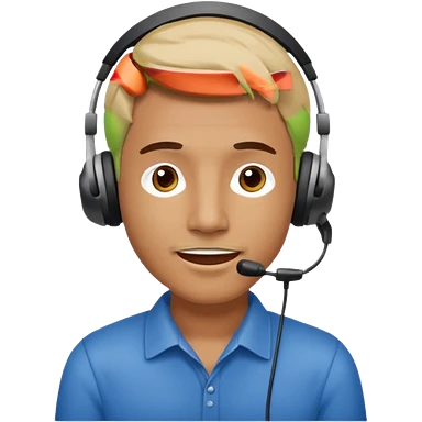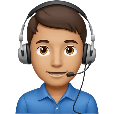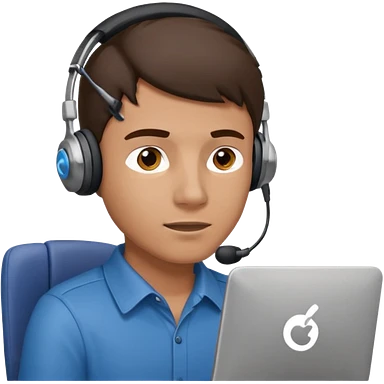 Joven formal con cabello negro, sin barba, con anteojos negros y usando head set de callcenter al estilo simpson emoji