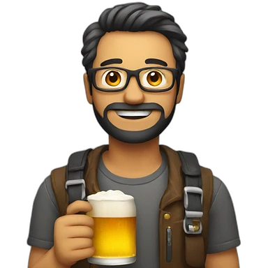 Developer with a beard wearing a hoodie drinking a beer emoji