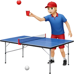 Beer pong table with somebody throwing a ping-pong ball into a red plastic cup emoji