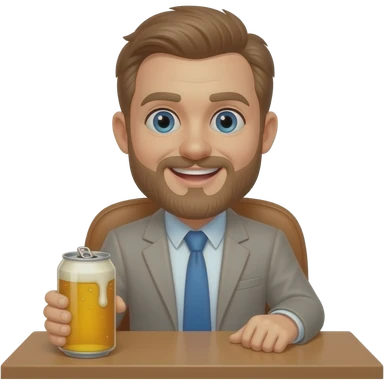 Ted sitting at a desk with a can of bere emoji