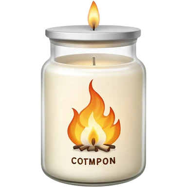 minimal flat emoji of a white scented candle in a glossy white glass jar with the label “cotton”, three visible flames, soft warm glow, clean vector style, elegant and modern, transparent background emoji