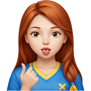 A cute ukrainian girl, with long auburn hair, playing sports, she's blowing a kiss. emoji