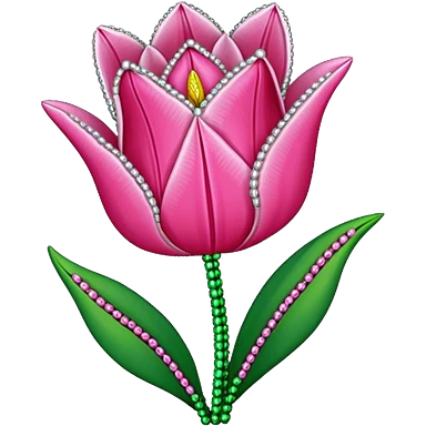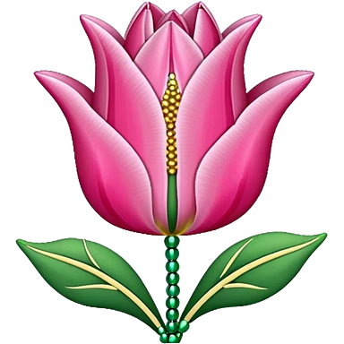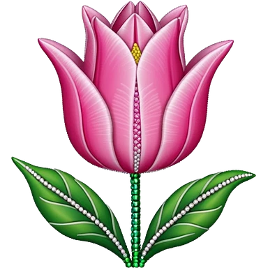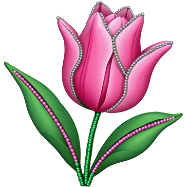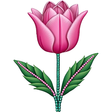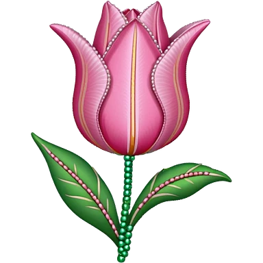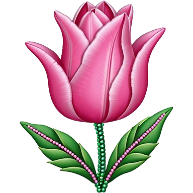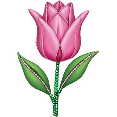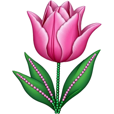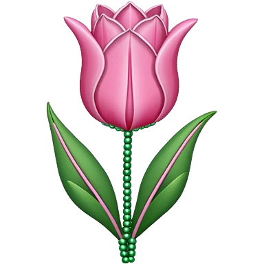 french beaded pink tulip flower with 2 leaves emoji