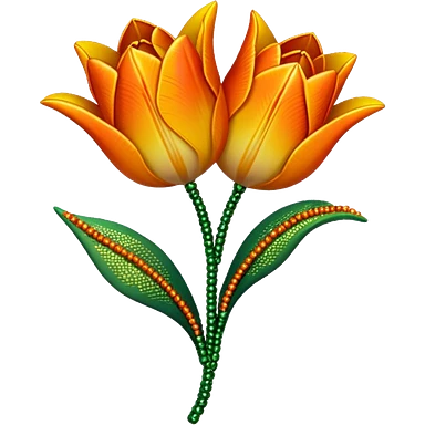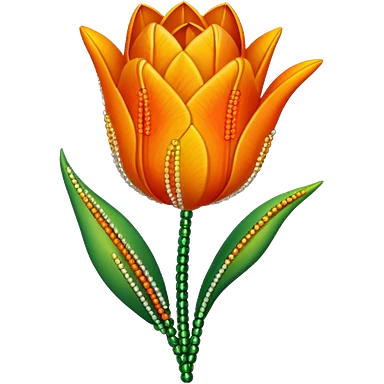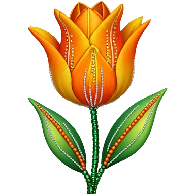 french beaded tulip, floral craft, sparkling glass beads, orange and yellow gradient petals, green foliage, realistic, elegant, no background emoji