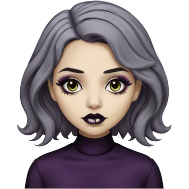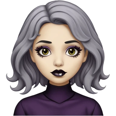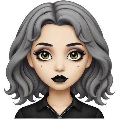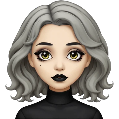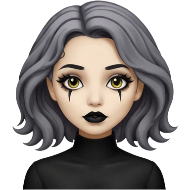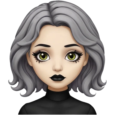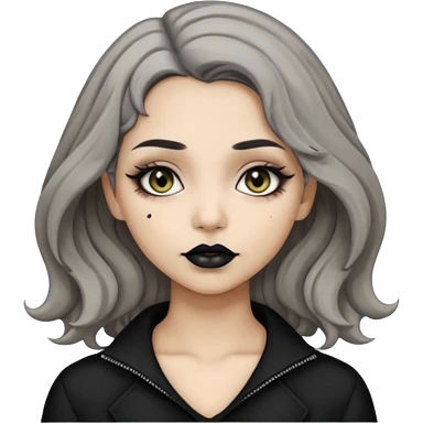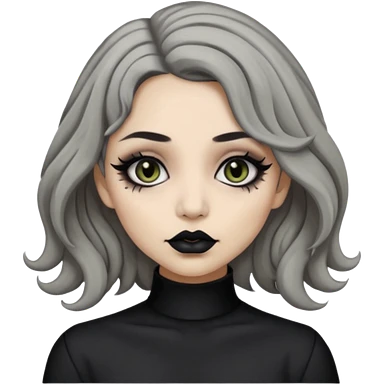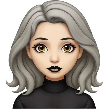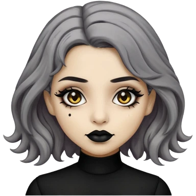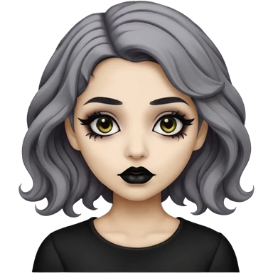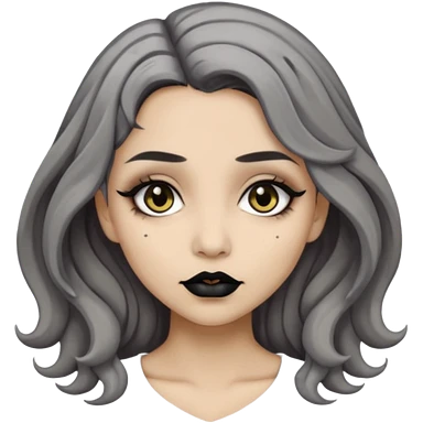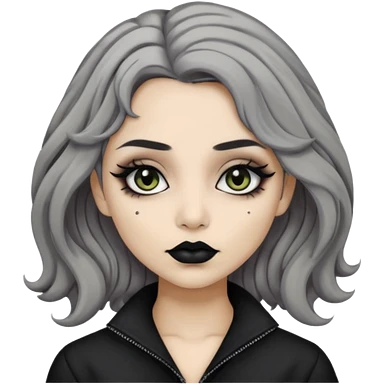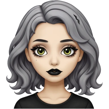 Beige olive skin grey wavy hair black lips goth girl emoji