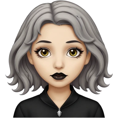 Beige olive skin grey wavy hair black lips lightbrown eyes goth girl emoji