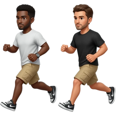 black runners, bare legs and beige cargo shorts emoji emoji