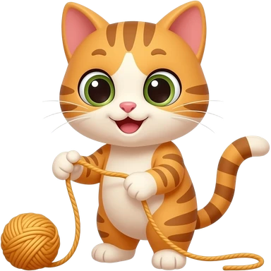 Cartoon kitten playing with a yarn emoji