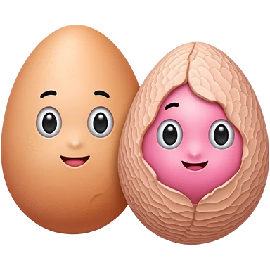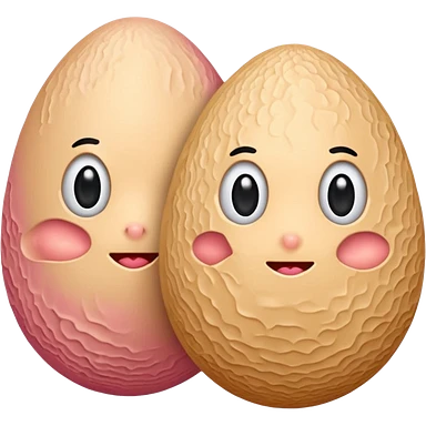 two skin tone peachy beige-pink egg shaped balls/spheres, both same size and same color, add a wrinkly skin texture to both. emoji