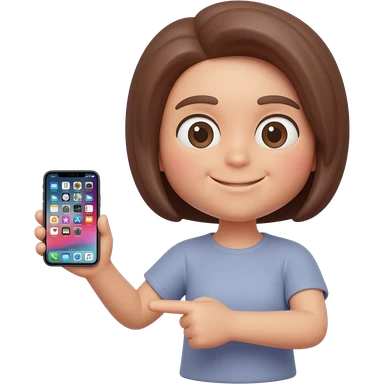 Tête emoji beige fille brune cheveux courts iPhone IOS qui exige de faire ce qu’on dit en pointant du doigt emoji