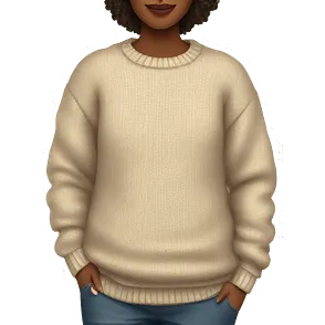Girl in beige sweater is sitting on the couch in her phone emoji