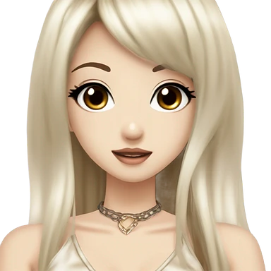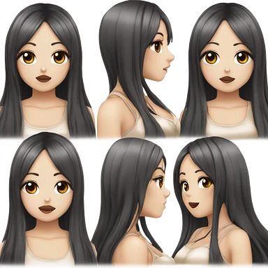 hime gyaru girl with LONG SILKY BLACK HAIR, with beige satin halter top with chest, very pale skin and pretty brown monolid eyes emoji