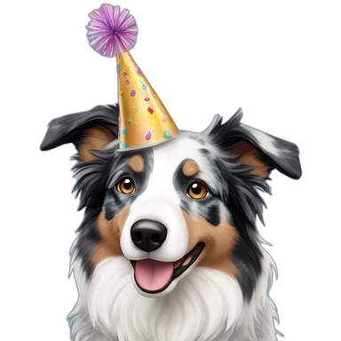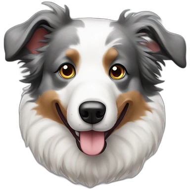 A merle border collie dog sitting, with blue and gray spotted coat, alert ears, and friendly expression emoji