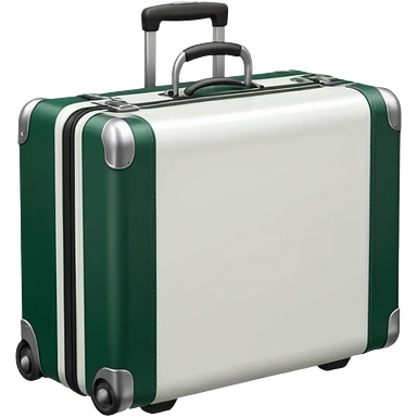 white suitcase with metal ribs, wheels, handle and corners dark green, emoji style emoji