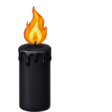 Black wax candle with eerie flame, minimalist gothic iOS emoji emoji