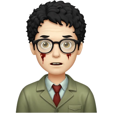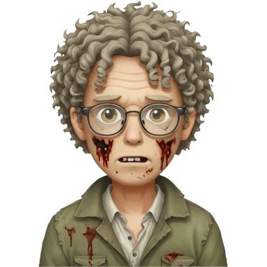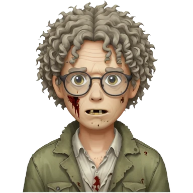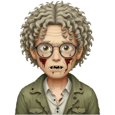 Hombre zombie pelo rizado y gafas emoji