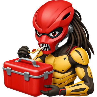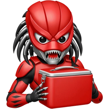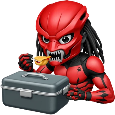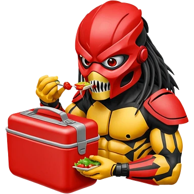 The predator with red mask eating from a lunchbox emoji