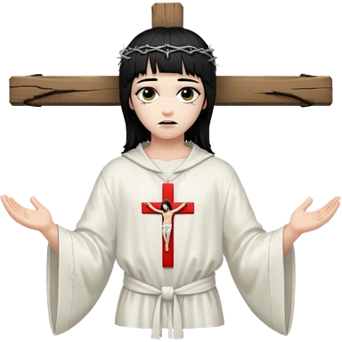 jesus-body-on-the-cross, with black edgy Emo hair emoji