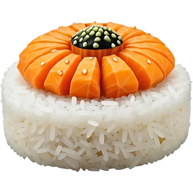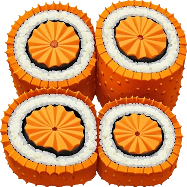single round sushi maki cross-section, rice ring and colorful center emoji