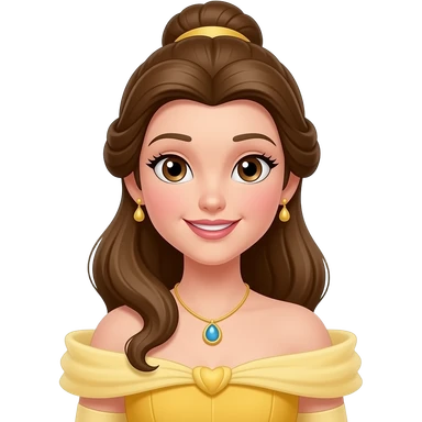 Belle princess from hips up, yellow ballgown, brown hair in updo, minimal style but clearly recognizable emoji