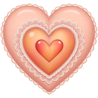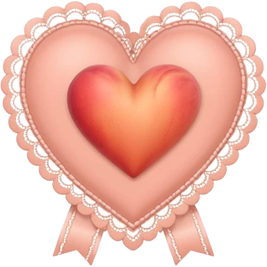 cute baby pink peach colored heart with lace trimming and with a lace ribbon emoji