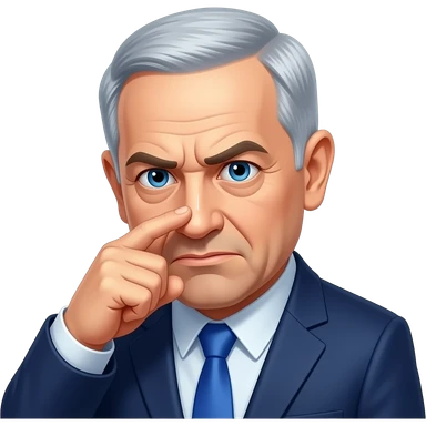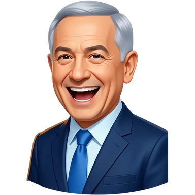 Create a highly recognizable emoji-style illustration of Benjamin Netanyahu, with simplified facial features, exaggerated expressions, and a cartoonish look, focusing on clear and iconic shapes, flat colors, and a clean vector style emoji