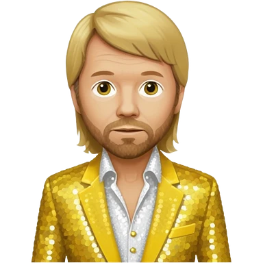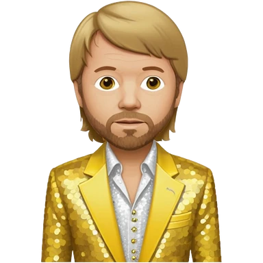 Björn Ulvaeus from ABBA with dark blonde hair, yellow sequin shirt, white sequin suit jacket emoji