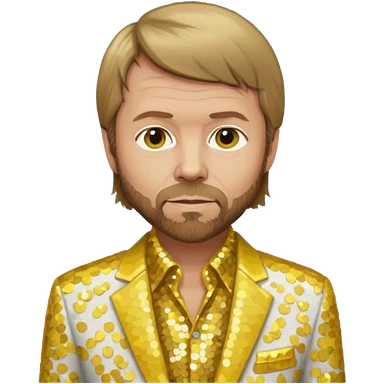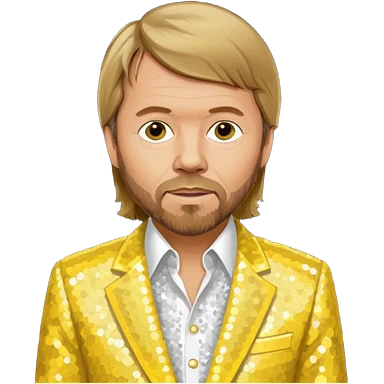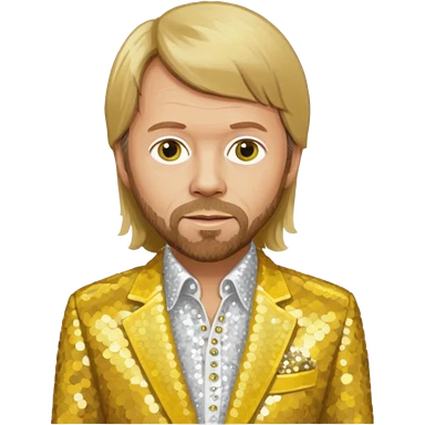 Benny Andersson from ABBA with light brown hair, blue sequin shirt, white sequin suit jacket emoji | AI Emoji Generator