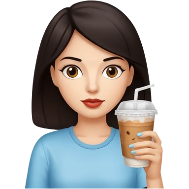 컴퓨터하면서 아이스 아메리카노(테이크아웃 잔에 담긴)를 많이 마시고 있는 다크서클 검은머리 여자 emoji
