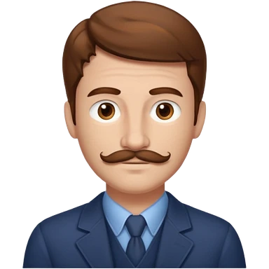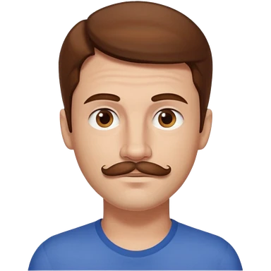 Benson Boone blue eyes, brown wavy hair and mustache, light blue v-neck shirt emoji