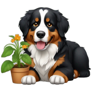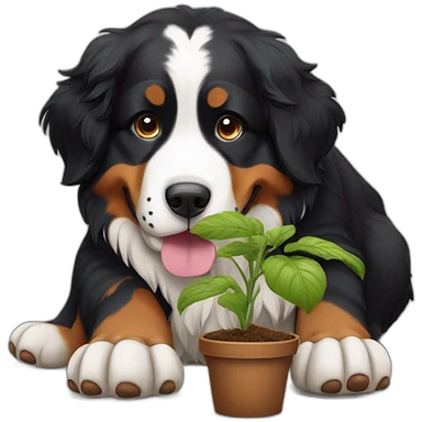 bernese mountain dog digging a plant emoji