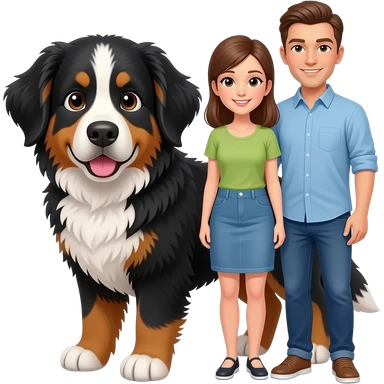 Bernese mountain dog female puppy along with young couple (man and woman) emoji