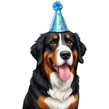 Bernese Mountain Dog Wearing Party Hat emoji | AI Emoji Generator