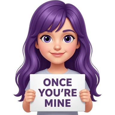 girl with long purple hair with a ONCE YOU'RE MINE sign emoji
