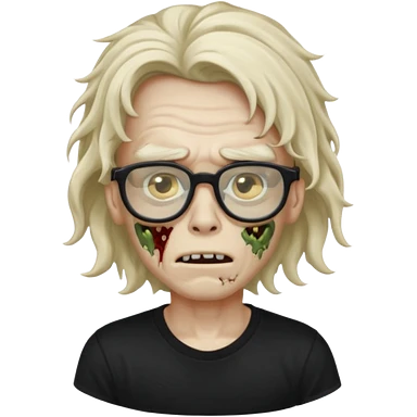 A zombie boy with long, wavy, falling hair, non-oval glasses, and a black t-shirt. emoji
