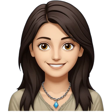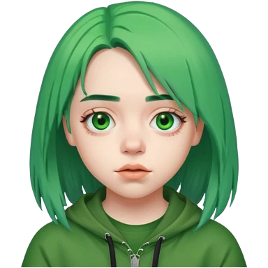 Zumbi feminino, de pele verde, cabelo marrom, longo, liso e castanho com franja reta emoji