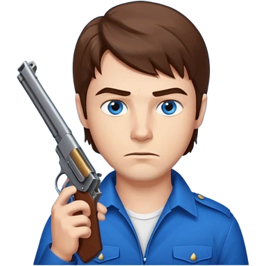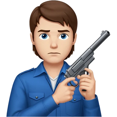 guy w medium long brown hair and blue eyes with gun pointed towards him emoji