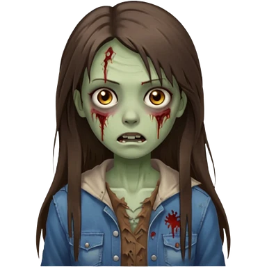 a zumbi girl with long brunette straight hair and light brown eyes emoji