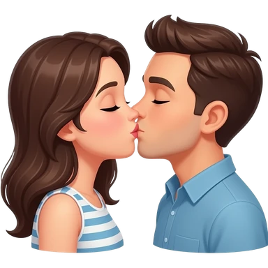 Un niño moreno con el pelo desordenado dándole un beso a un niña de pelo negro medio corto emoji