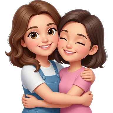 Best friends short straight hair girl and long curly hair girl emoji