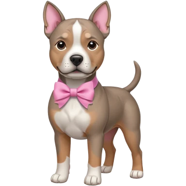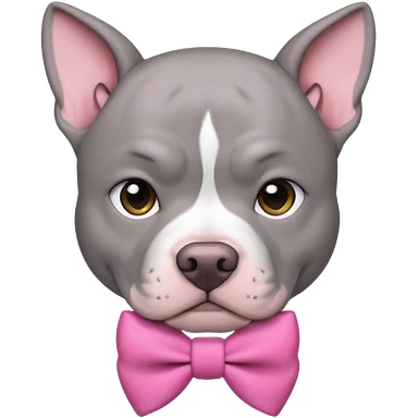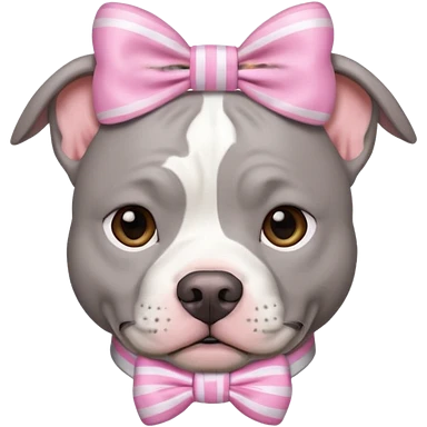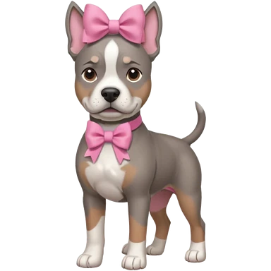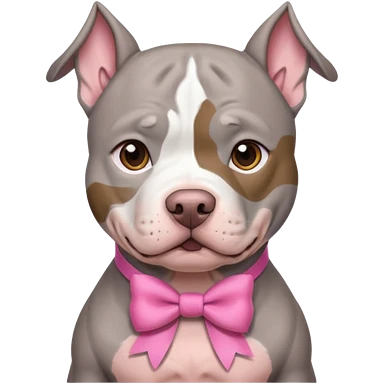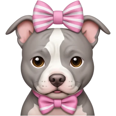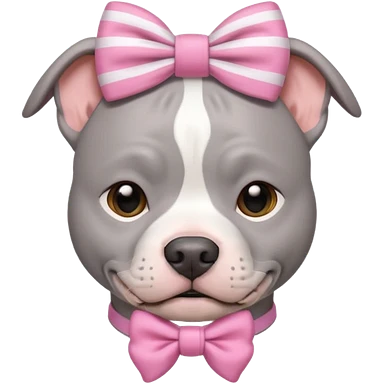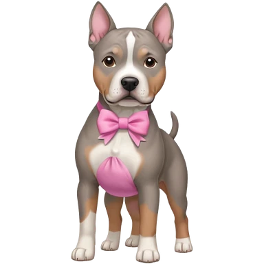 Fully Gray Pitbull with a white stripe on his head and a pink bow emoji