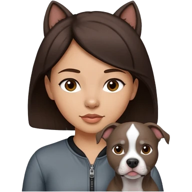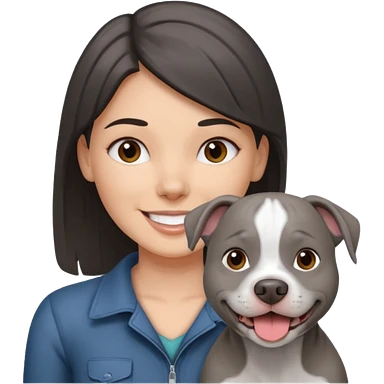 Completely Grey pitbull with one darkBrown haired Girl emoji
